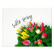 Bold tulips nature flower photography has text hello spring which can be personalises for unique wall art decor for home or office.. Original photograph copyright Ann Powell all rights reserved.