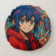 Bold Red Anime USA Graphic T-Shirt Round Cushion