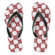 Bold red, black, and white graphic pinwheel flip flops