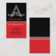 Bold Red & Black Monogram Vertical Business Card