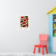 A striking retro-inspired floral design featuring red, black, and taupe poppies against a textured beige background. The minimalist, mid-century style layout emphasizes clean lines and bold color contrasts, perfect for modern or vintage-themed interiors.