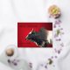 Wow! Stand out from the stack with this bold and unique Christmas card featuring a striking watercolor image of a Brahma bull set against a vibrant red background. A perfect choice for cattle lovers, farmers, ranchers, or anyone who appreciates a modern, eye-catching take on holiday greetings. Easily personalize the greeting, update the year, and add your family or individual name for a custom message. Send a "Merry Christmas" they won't forget with this powerful Zebu design.