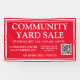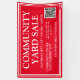 Ensure your community yard sale stands out with our striking Red Community Yard Sale banner! Featuring a bold red background and crisp white typography, this custom-made banner is designed to capture attention and guide traffic straight to your event. Personalise the text with your yard sale details, including dates, times, and location, for a professional and polished look. Perfect for outdoor display on fences, buildings, or between trees, this durable, weather-resistant banner is built to endure all weather conditions. Whether it's a neighbourhood sale, garage sale, or fundraiser, this banner is the ideal solution for getting noticed. Order yours today and make sure your event is the talk of the town!