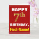 This simple birthday-themed greeting card design features a warm birthday wish like "HAPPY 7th BIRTHDAY, First-Name!" on the front, in bold text on a red coloured background. The birthday number has a faux/imitation gold-like colouring appearance. The name on the front can be customised. The inside features a birthday message that can be customised. A greeting card like this could be a fun way to deliver birthday wishes to somebody who is celebrating their seventh birthday. [~Z0000276]