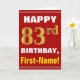 Bold, Red, Faux Gold 83rd Birthday w/ Name Card