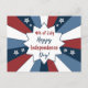 Celebrate Independence Day with this eye-catching holiday postcard that perfectly encapsulates the festive spirit of the 4th of July. This postcard features vibrant red, white, and blue rays radiating from the centre, accented with star designs to symbolise the American flag. The bold and cheerful "Happy Independence Day!" message on the front sets the tone for a joyous celebration. The back of the postcard offers customisable text, allowing you to add your personal touch and heartfelt greetings to friends and family. Whether you're inviting loved ones to a 4th of July BBQ or simply sending your patriotic wishes, this postcard is a perfect way to spread the holiday cheer and celebrate America's independence.