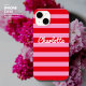 Introducing our latest addition to phone accessories - the bold pink and red stripe iPhone 14 case with a retro style font featuring your name. This case is the perfect blend of style and protection. The colourful stripes give it a unique and eye-catching look, while the sturdy material keeps your phone safe from scratches and minor drops. With precise cutouts for ports and buttons, this case offers easy access to all functions of your phone. Get ready to turn heads with this stylish and protective phone case.