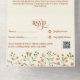 This bold and Retro-style All in one wedding invitation features a hint of watercolor flowers in neutral earthy tones and modern calligraphy. An elegant bold floral look on a simple neutral background.