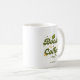An elegant, green and gold "books + coffee" mug, designed with retro typography and botanical elements. Please message the designer if you wish to have any colour changes done for you.