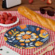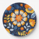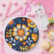 Bold Retro Floral Illustration in Orange and Blue Paper Plate