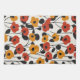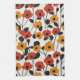 Bold Retro Floral Pattern Red, Orange, and Black Tea Towel