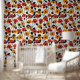 Bold Retro Floral Pattern Red, Orange, and Black Wallpaper