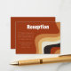 This groovy retro wedding reception card features wavy lines in tan, brown, and orange, reminiscent of the 70s and hippie lifestyle. Bold, vintage "Kindly Reply" in funky white script next to the abstract curvy lines. Groove along with this fun earth tone wedding details card.