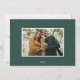Stylish holiday card featuring your horizontal photo on the front with "Merry Christmas" displayed in a bold retro script overlay. Personalise the front of the photo Christmas card with your family name and the year. The card reverses to display an additional photo framed in white with a dark green background with subtle white dots.