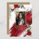 Save the Date | Your Photo - Gold Photo frame - Eucalyptus leaves, sage green foliage along with burgundy red and ivory peonies grace a geometric gold frame. Bold faux metallic crimson red paint stroke splashed across the page. Rich Vibrant and deliciously elegant. Coordinated colour on reverse that is customisable - Features a simple classic text style (that can be changed if you like just Click Personalise this template then in the drop down, choose Click to customise further- here you can change the font and text colours as well as background colour) This is part of a design coordinated wedding suite collection designed by the BarefootBride™.