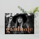 Stylish graduation party invitations featuring the graduate's horizontal photo with "graduate" in bold rose gold foil lettering. Personalise the photo graduation party invitation by adding the graduate's name, graduation year, and school. The rose gold foil graduation party invites reverse to display your party details.