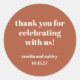 Bold Minimalist Rust Fall Retro Simple Custom Wedding Thank You Classic Round Sticker