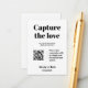 The *Bold Script Capture The Love QR Code Enclosure Card* on Zazzle combines modern elegance with functionality. Featuring a striking bold script and a customisable QR code, this card lets you effortlessly share your love story, wedding details, or special memories with guests. Simply scan the code to access personalised content, such as a wedding website, photo album, or video message. Perfect for weddings, engagements, or any celebration, this card adds a personal and contemporary touch to your event. Crafted with high-quality materials, it’s a memorable and stylish way to engage your guests while enhancing your celebration.