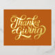 Bold Script Orange Happy Thanksgiving Foil Holiday Postcard