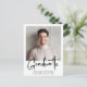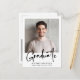 Modern graduation announcement postcard featuring your photo and "Graduate" in a stylish bold script. Add the grad's name, school and class year in simple typography. On the reverse, add an additional photo and personalised message, or leave blank.