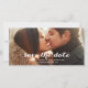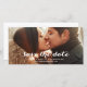 Save our Date | Modern Script Save the Date Photo Card. Design by Elke Clarke© Bold, simple, modern white script text overlay. Fully customisable if you select "customise it". Replace the sample photo shown with your own engagement photo. Other colours available.