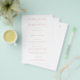 Classic style wedding menus featuring a simple yet elegant design with your names in script and your details in serif fonts.