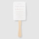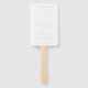 Classic style wedding program hand fans featuring a simple yet elegant design with your names in script and your details in serif fonts.