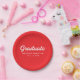 Add a personalized touch to your graduation party with custom graduation paper plates! The stylish paper plates feature "Graduate" in bold white script lettering with a red background or color of your choice. Personalize the red graduation plates by adding the graduate's name and graduation year.