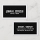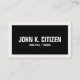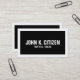 Wide border large text business card. Simple, yet strong and impactful design. Large plain white border and large bold text on high contrast black background.