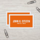 Orange and white business card. Bold, wide border business card. Simple, strong and impactful design. Large plain white border and large bold white text on orange background.