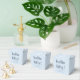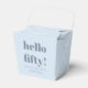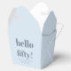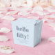 This party favour box features a soft light blue background with "hello fifty!" in large bold lettering on the front, along with the honoree's name, event date, and venue in script and spaced capitals below. The clean blue and grey palette gives it a modern, grown-up feel that works beautifully for a milestone birthday celebration. A great pick for a 50th birthday party favour or guest gift.
