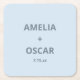 Bold Soft Blue Modern Wedding Names Date Custom Square Paper Coaster