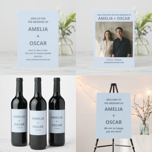 Modern Soft Blue Simple Bold Typography WeddingDesigned by Opal Ellery