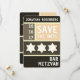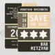 Bold colours. A clean, simple design. Large type. The Star of David... prominently displayed in a row. This modern and unique Bar Mitzvah save the date invitation features a complementary palette with each section defined by a unique background colour. All of the printed information can be customised with your son’s name and the event date…just fill in the fields!