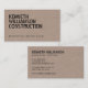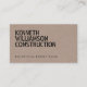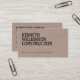 Your name or business name is shown in a bold, stencil-style font on a dark tan particle board background for this construction or builder's business card template. The aesthetic is carried over onto the back of the card. © 1201AM CREATIVE
