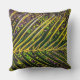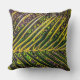 This Throw Pillow features original, abstract artwork by ZoeSPEAK, made from an original photograph of a reclinata palm frond. The strong Florida sun highlights the leaves, which grow out from the spine like stripes in diagonal rows. The lawn, in soft focus, forms the green background.