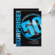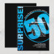 This bright and fun birthday invitation will let your guests know the most important part; it's a surprise! Bright blue on black with a giant 50 with your custom wording for a winning surprise birthday invite. The back reminds them to shhhh!