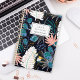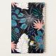 Personalise this planner with your name in black italics framed by a white rectangle, on a bold botanical pattern of tropical foliage in shades of blush pink, blue and green on a black background.