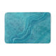 A turquoise and blue marble pattern decorates this elegant bathroom rug. The design is from original art.