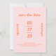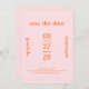 Modern wedding save the date card featuring a bold and typographic style with "save the date" at the top, one name on each side and your date in the middle. Your event details are below. The colour theme rainbow sherbet (pink and orange) and may be changed in the design editing tool. This casual tropical style save the date card is great for an informal spring or summer wedding.