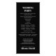 This elegant wedding program features a minimalist design with bold typography. The sleek black background sets the perfect backdrop for the crisp white font, creating a striking contrast. The front of the program includes all the necessary information for the ceremony, with a modern vertical line on the left side. The couple's names are prominently displayed towards the top, adding a personalised touch. On the back, you'll find details for the reception, as well as a heartfelt message of gratitude to thank your guests for being a part of your special day. This program is sure to make a lasting impression.