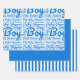 Enjoy this bold typography written pattern that has: Boy and Baby Shower written in english script in bold blue and white background. Plus, a solid, blue and a striped blue/white second and third sheet.