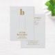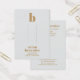 Our modern bold typography hair clips and barrettes display card features a gold ink monogram initial in lower case serif type set on an elegant light grey background. On front of the card are two printed lines to guide your cutting of the slits to insert the hair clips and, below that, your business name and salon services, also in gold ink. Additional details about your business, including phone number, address, email address, and social media names can be personalised on the back of the card. Just replace the sample text with your own wording on the personalisation template.