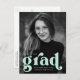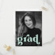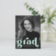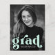 Bold graduation party invitation postcards featuring the graduate's vertical photo with "grad" in bold mint green lettering. Personalise the photo graduation party invites by adding the graduate's name, graduation year, and school. The postcard graduation party invite reverses to display your return address and party details.