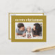 Merry Christmas! Celebrate the holidays with this classic photo holiday postcard. It features retro bold typography with snow and snowflakes pattern on a gold background. Personalise by adding names, greeting and photo. This modern Christmas postcard is available in other colours and cardstock.