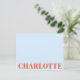 This note card features your name in oversized bold orange letters anchored along the bottom of a light powder blue card — clean, graphic, and a little bit fun. It's a great set to keep on hand for thank you notes and letters, and makes a really nice personalised gift. Add a name and it's ready to send.