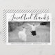 Bold typography Wedding Thank You photo with the text "Love and Thanks". The backside includes a diagonal striped pattern with black and white stripes and your photo.
