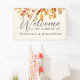 Beautiful bold watercolor fall leaves decorate the sides of this boho autumn wedding banner. Gorgeous shades of red, orange, and brown form the botanical border of this cream decor. A modern bohemian design with bright, fun colours.