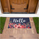 Bold Watercolor Pink Flowers & Hand Lettered Hello Doormat