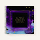 This glam, dramatic notebook design features a vivid purple and blue watercolor splash on a black background, with faux gold look accents.
